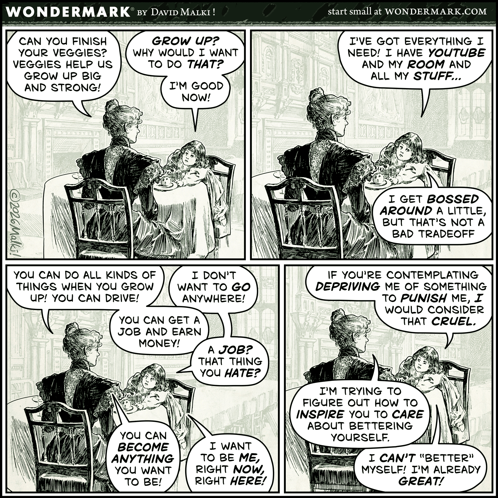 On the plane to Toronto I impressed myself mightily by saying to the person beside me (after a few minor conversations about the drink cart and so on proved to be perfectly pleasant), “Can we be friends? I am tired of sitting in these seats staring straight ahead not talking to people. I’m David.” I’m not usually comfortable initiating conversations like that, but I did this time, and it was nice! We talked for an hour or so, and then went back to our reading or whatever. It was perfectly fine.
