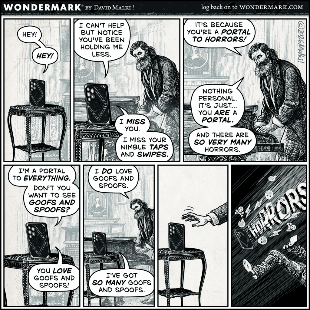 #1582; Limit Your Scream Time — February 12th, 2026 [ Tags: despair, technology, the culture ] Permalink: https://wondermark.com/c/1582/ Buy a Print