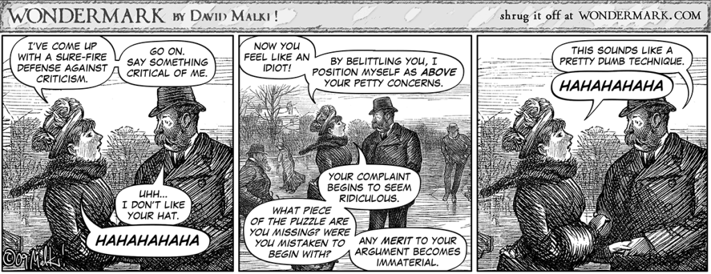 #492; In which Rebecca laughs — February 24th, 2009 [ Tags: narcissism, solutions, thought processes ] Permalink: https://wondermark.com/c/492/ Buy a Print