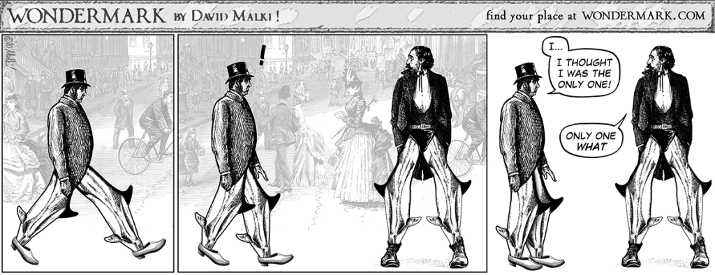 #663; They are Dolphins — October 5th, 2010 [ Tags: anomalies, narcissism ] Permalink: https://wondermark.com/c/663/ Buy a Print